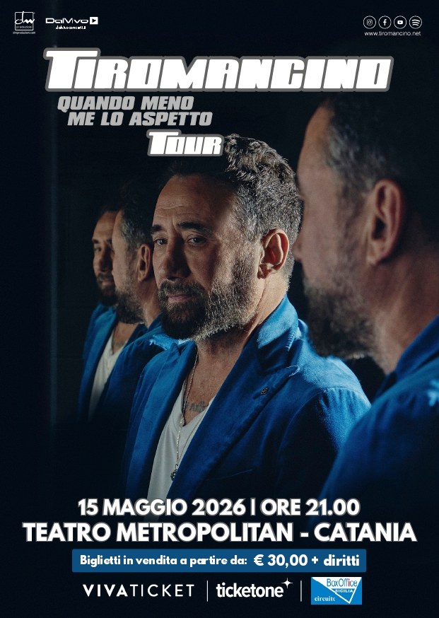 15mag2026 TIROMANCINO - QUANDO MENO ME LO ASPETTO TOUR 15/05/26 TEATRO METROPOLITAN CATANIA ORE 21:00 ACQUISTA ON LINE PUNTI VENDITA