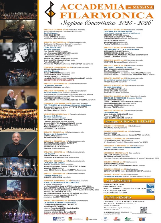 ABBONAMENTI STAGIONE 2025/2026 PALACULTURA MESSINA ORE 18:00